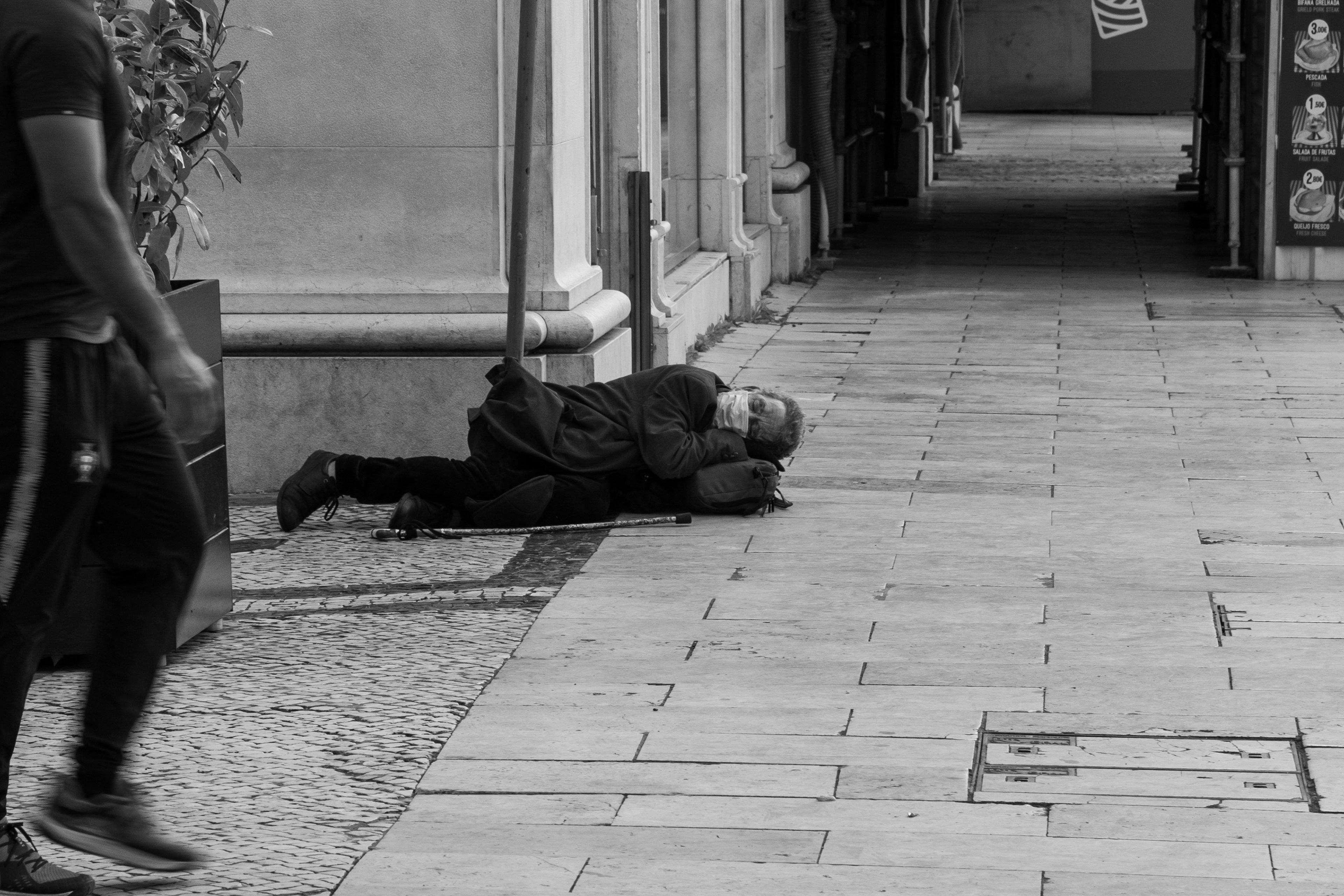 A série Só foi construída nos primeiros momentos de confinamento aqui em Lisboa, as fotos foram tiradas durante as saídas esporádicas para fazer compras, a linguagem é sem dúvida fotojornalística, senti a necessidade de registar momentos de uma cidade vazia. E as pessoas quando saiam permaneciam na solidão